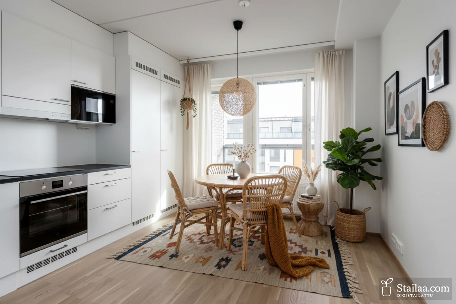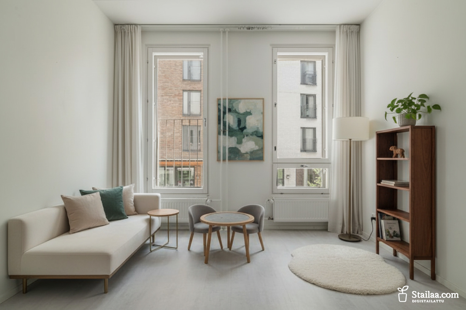 Selaa huone kerrallaan: ensin Ennen, sen jälkeen eri sisustustyylit. Klikkaa kuvaa avataksesi katselun ja vaihtaaksesi Ennen ↔ Jälkeen.