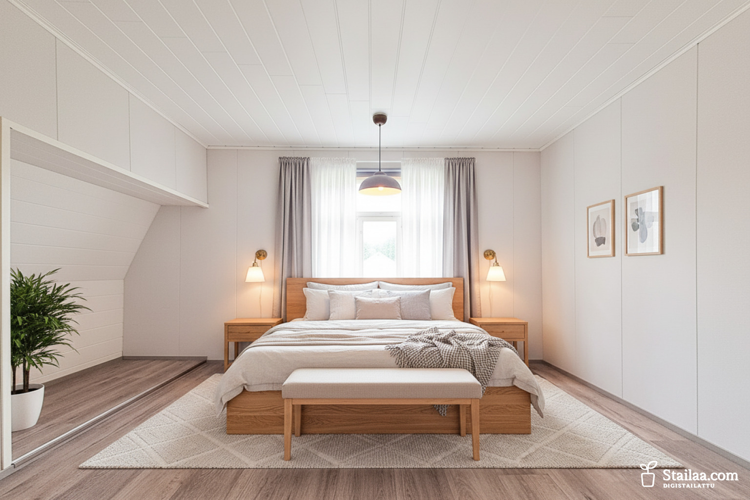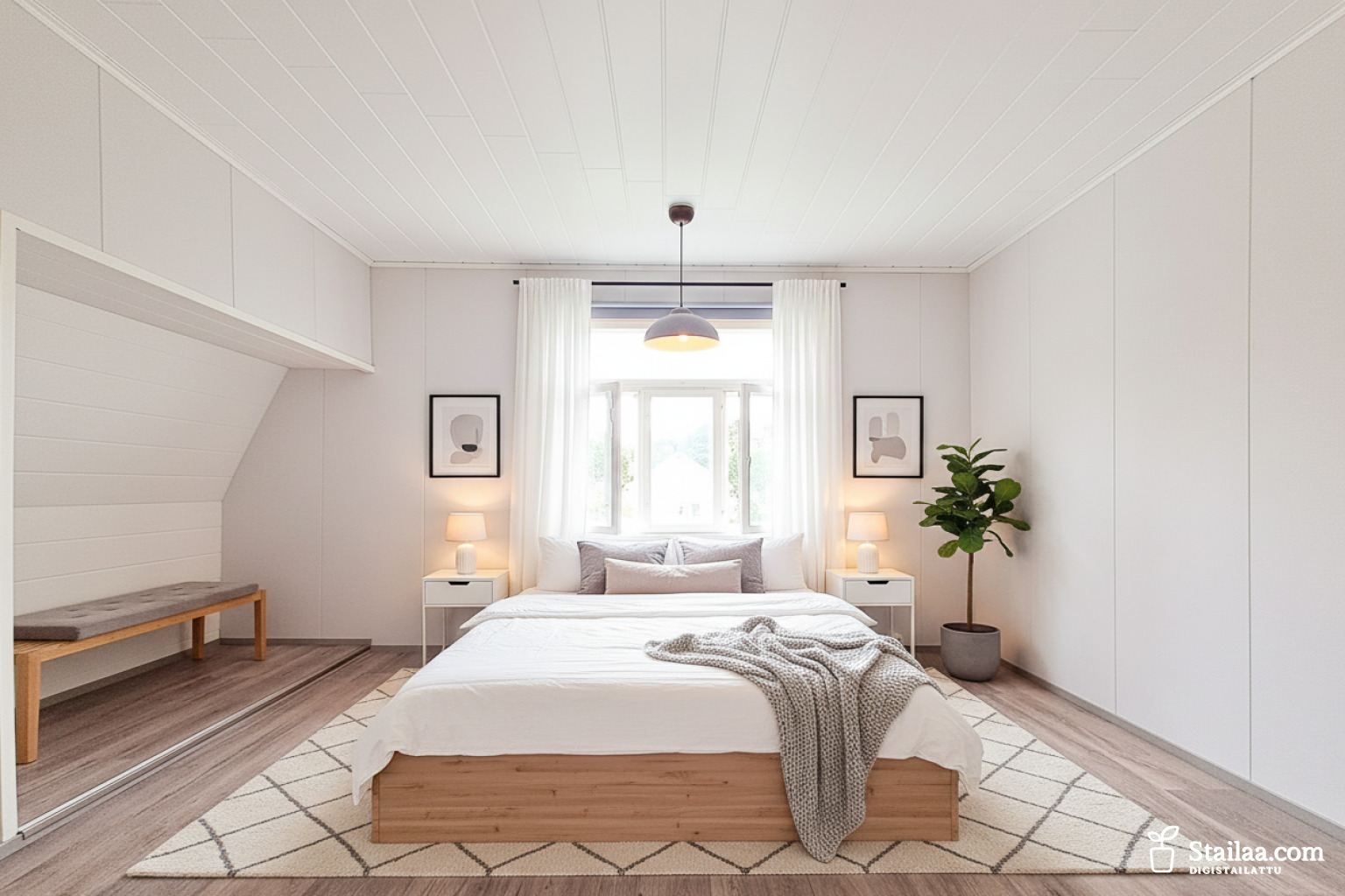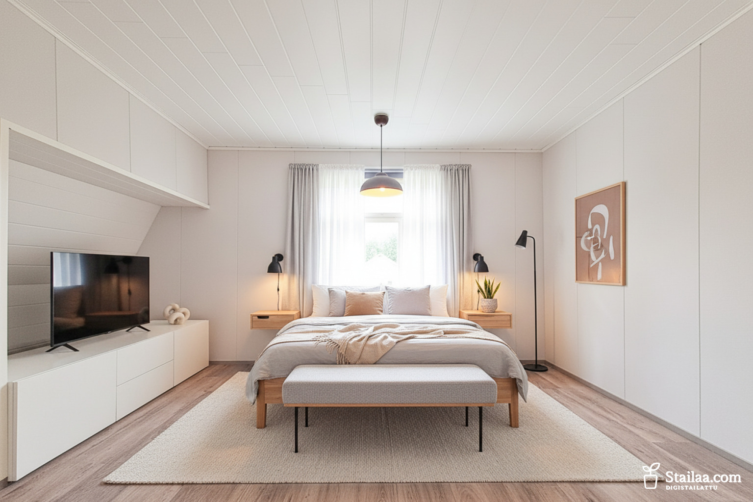 Skandinaavinen makuuhuone – vaaleat sävyt & luonnonmateriaalit