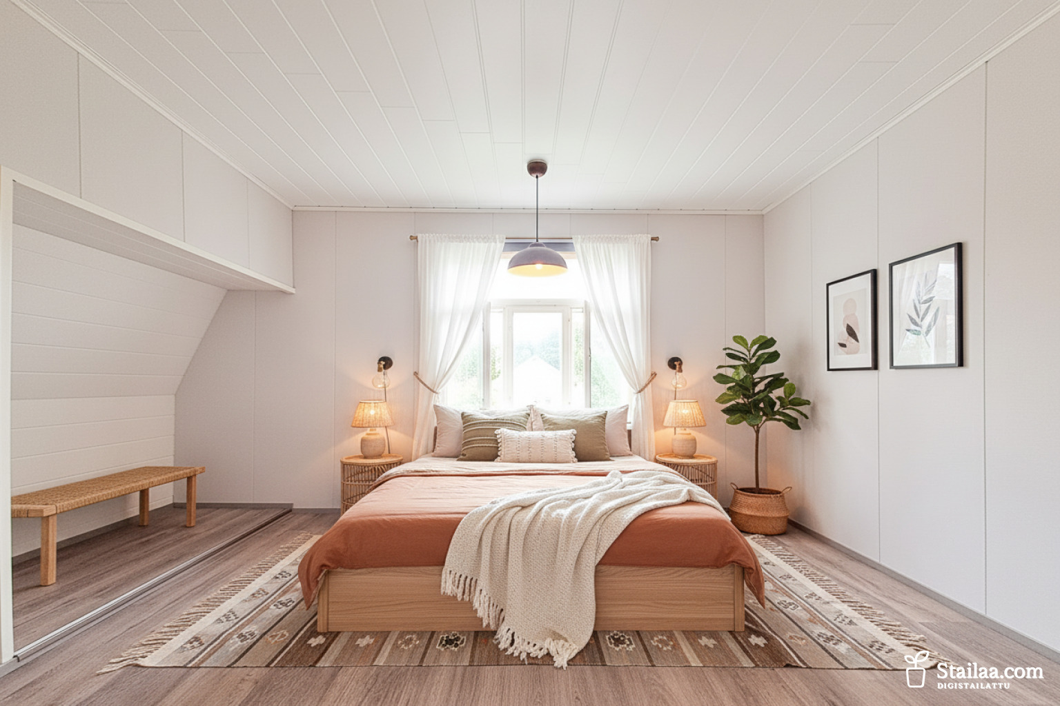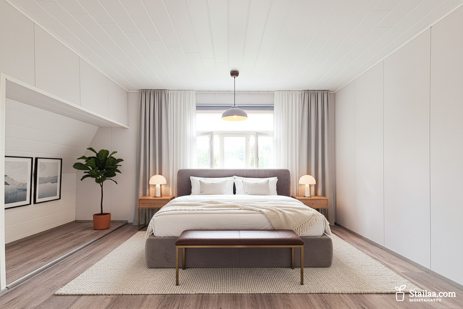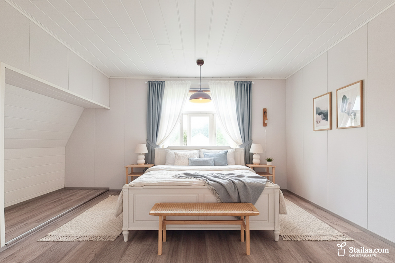 Skandinaavinen makuuhuone – vaaleat sävyt & luonnonmateriaalit