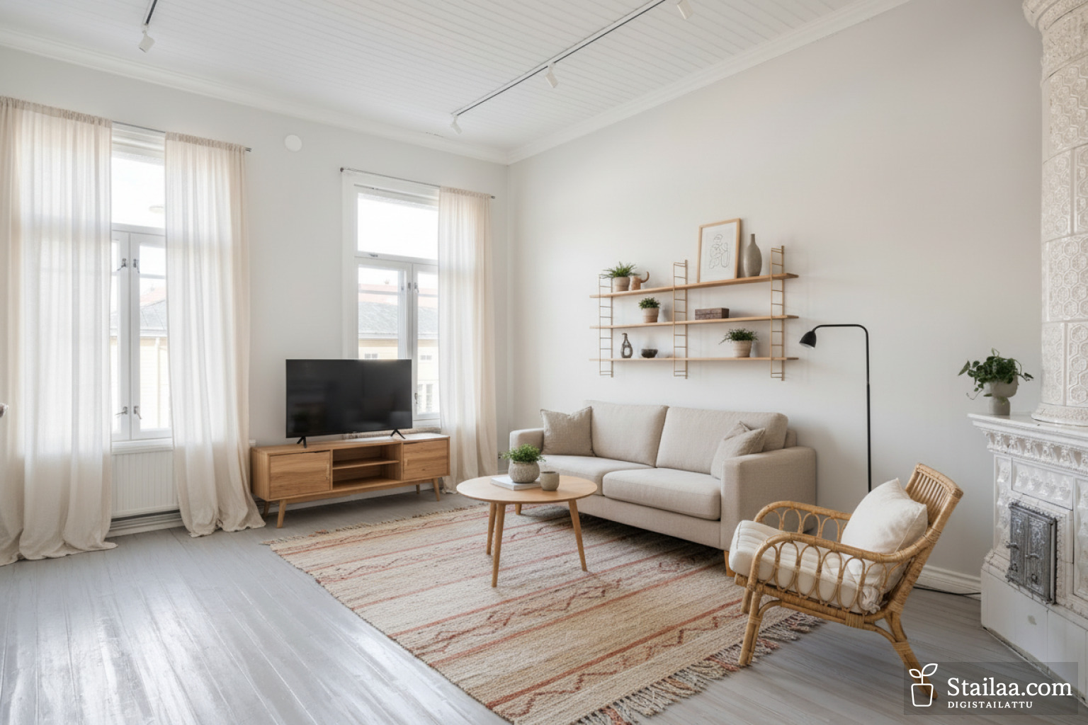 Skandinaavinen olohuone – vaalea & luonnonläheinen