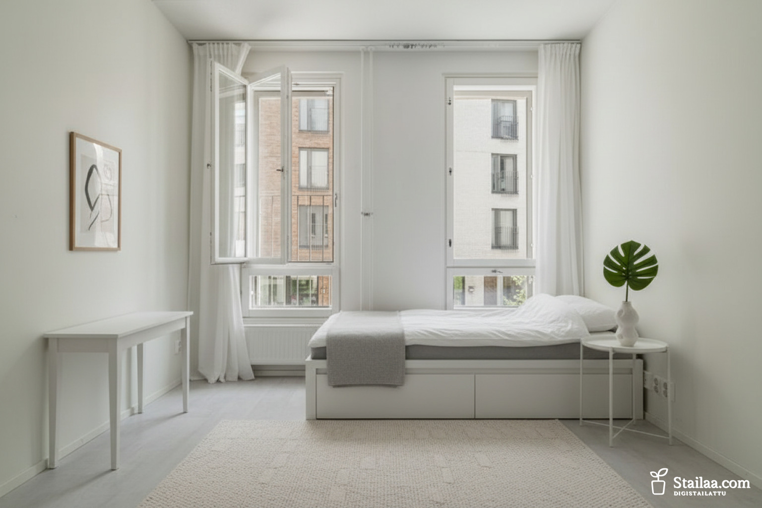 Minimalistinen makuuhuone – pelkistetty ja rauhallinen