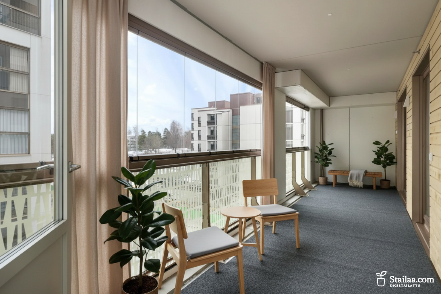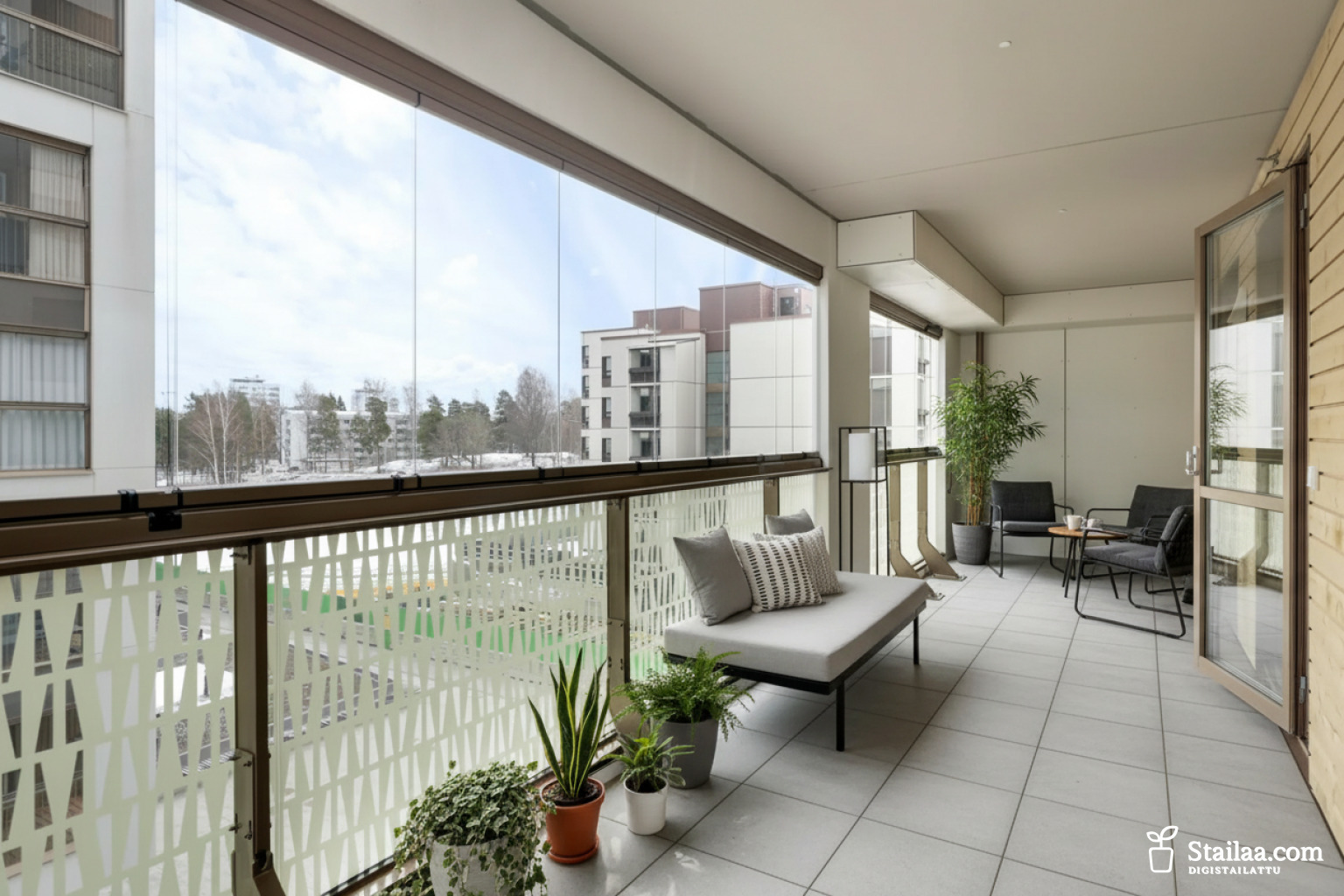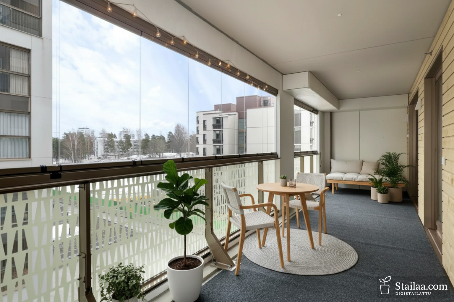 Minimalistinen parveke – pelkistetty ja rauhallinen