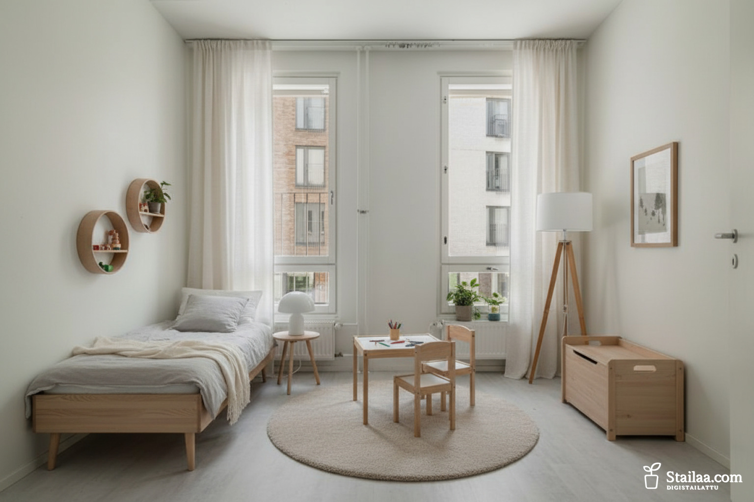 Minimalistinen lastenhuone – pelkistetty ja rauhallinen